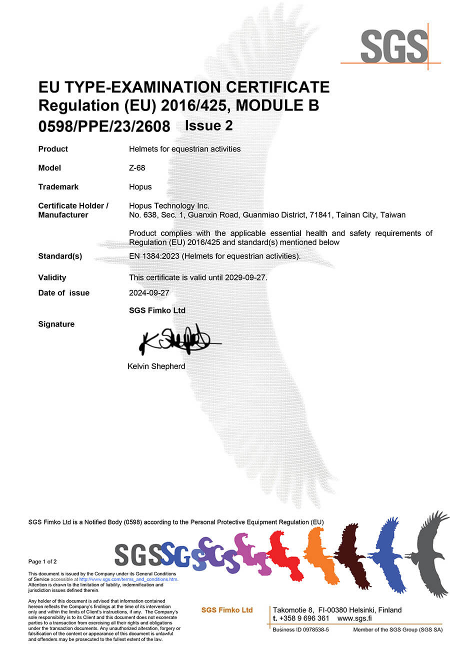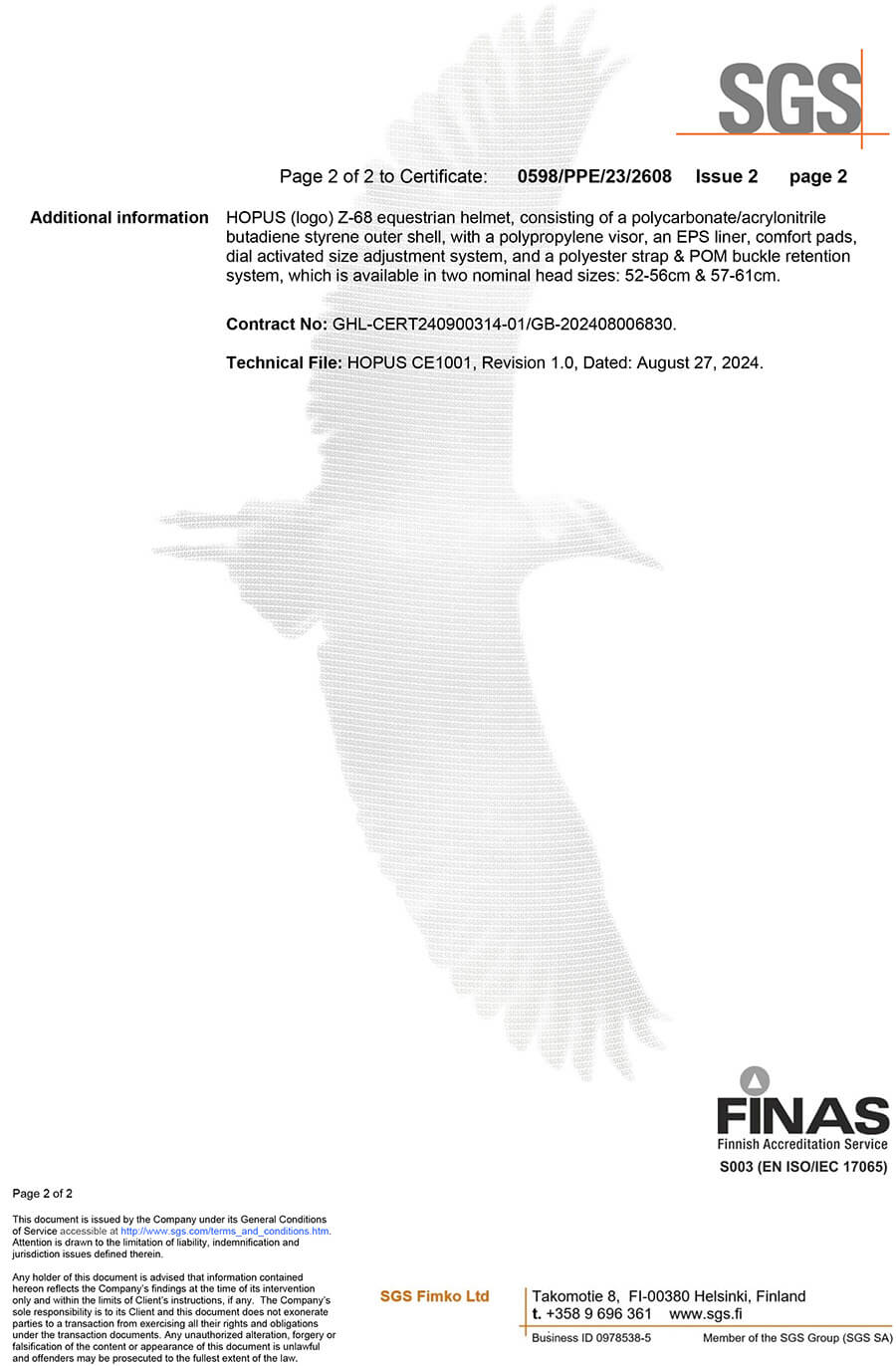 – Equestrian helmets certified the latest EU equestrian helmet standard 1384:2023 and the latest EU inspection certificate (EU) 2016/425 personal protective equipment regulations.